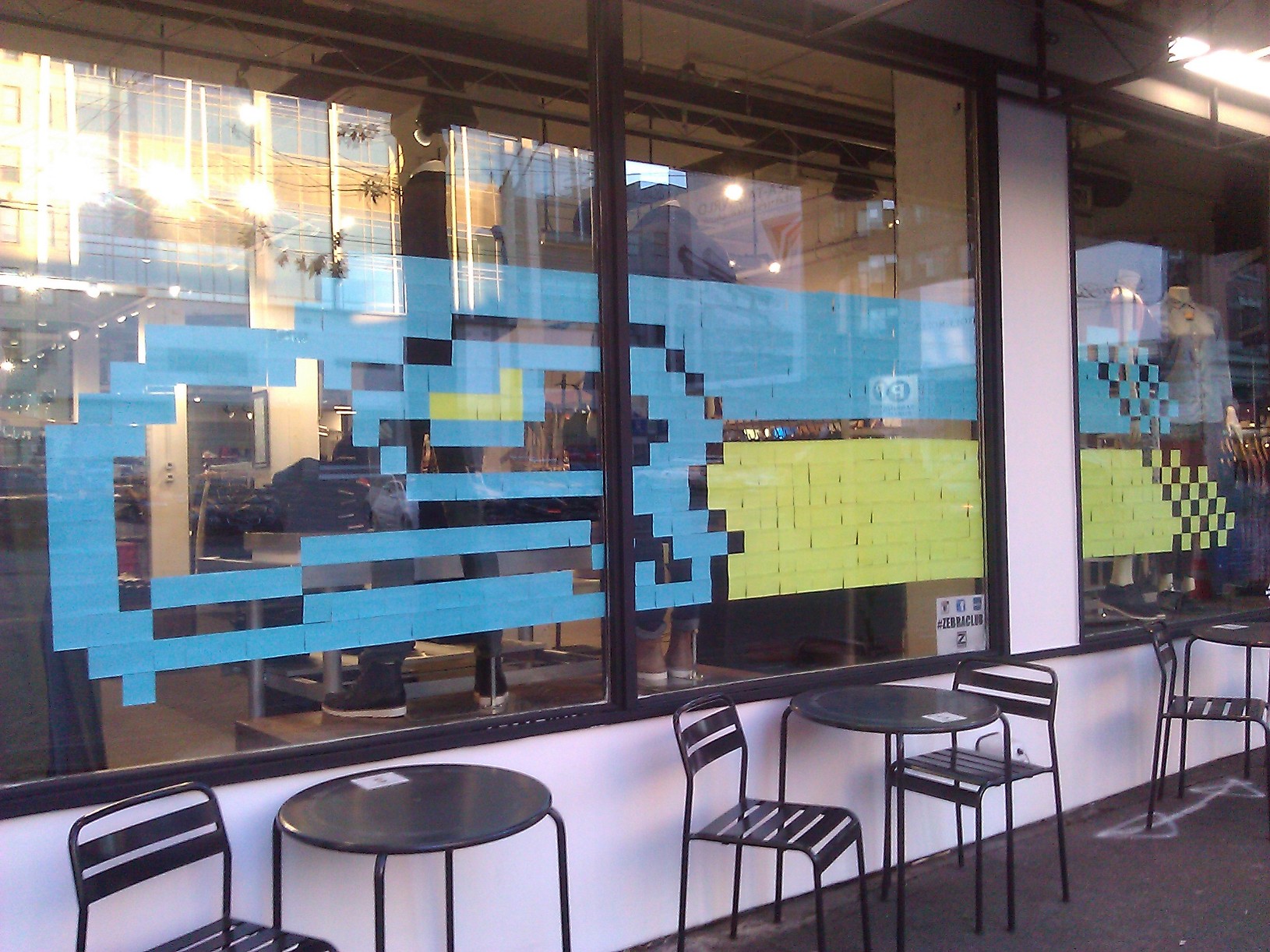 BEST: Some poor Zebra Club intern probably spent hours mapping out a PostIt matrix to ensure that their window decoration was perfectly aligned. And boy, was it worth it!
