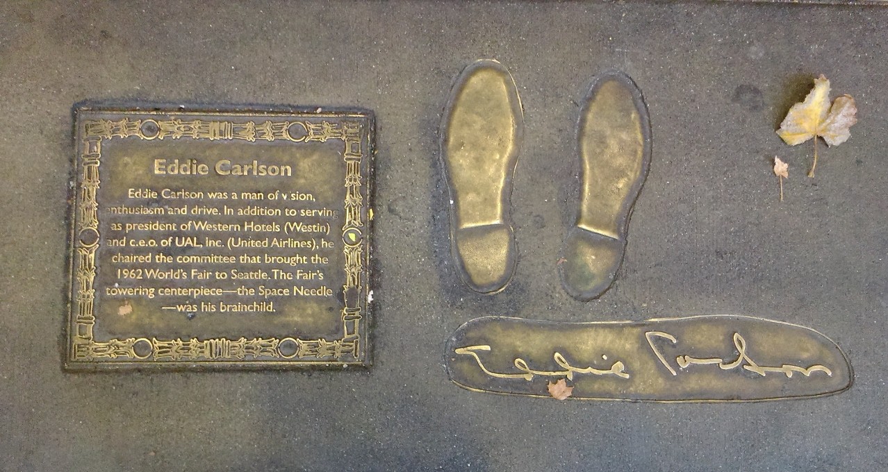 Eddie Carlson: A native of Tacoma, Carlson first entered the hotel industry as a pageboy while attending the University of Washington. Although he never finished his degree, Carlson worked in Seattle as a hotel elevator operator, bellhop, room clerk, assistant manager and manager before he joined the US Navy at the age of 31. When Carlson returned from World War II, he took a job as assistant to the president of Western Hotels (now known as Westin Hotels). Carlson then worked his way up through the ranks: he became executive Vice President, President, then Chairman and CEO. When the hotels merged with United Airlines in 1970, Carlson was able to turn the nearly-bankrupt airline into a thriving business once more. Today, he is remembered for bringing the 1962 World’s Fair to Seattle, and is credited as the origin of the idea of the Space Needle – one of Seattle’s most iconic landmarks. After his death, the Carlson family established the Carlson Leadership and Public Service Center at the University of Washington.
