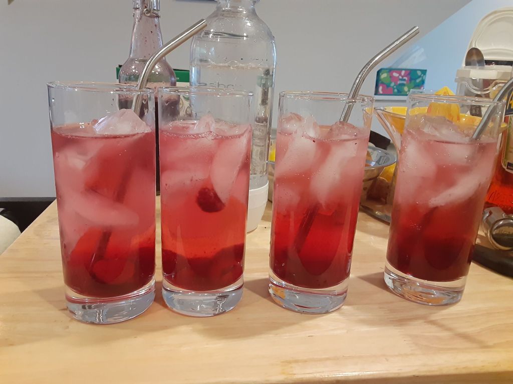 We had two kinds of tea from the Lord of the Rings fandom blend from Friday Afternoon Tea: a black tea named Second Breakfast, and a green tea called Merry Fellow. I also made a blueberry vinegar shrub to mix with seltzer.